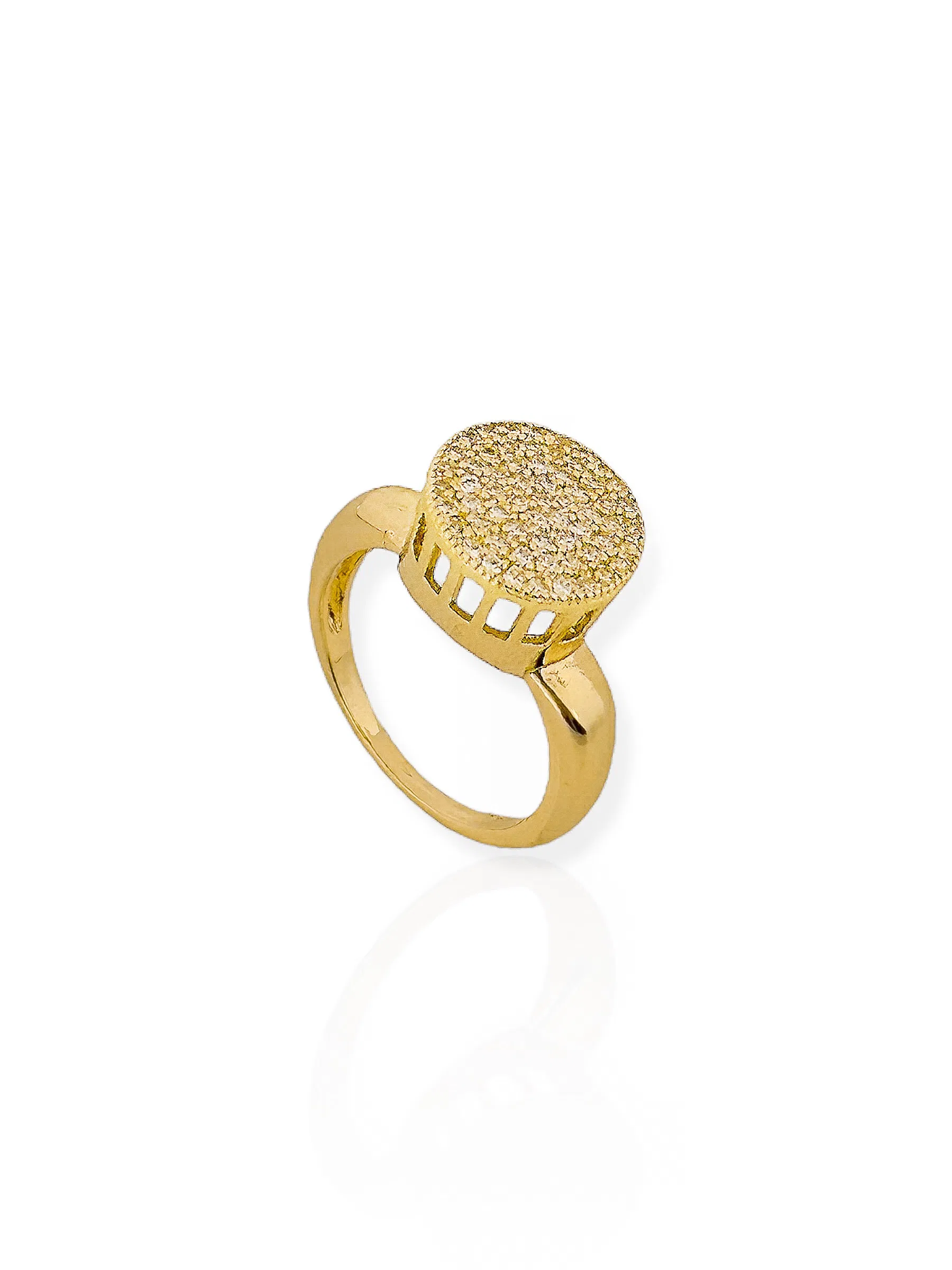 Anel Círculo Cravejado-Folhado Ouro 18K