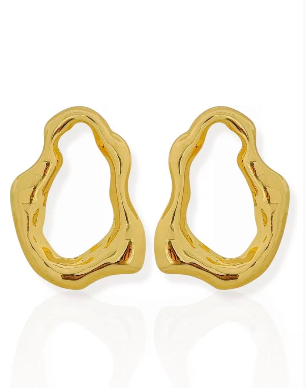 Brinco Forma Orgânica Vazada Martelada - Folhado Ouro 18K