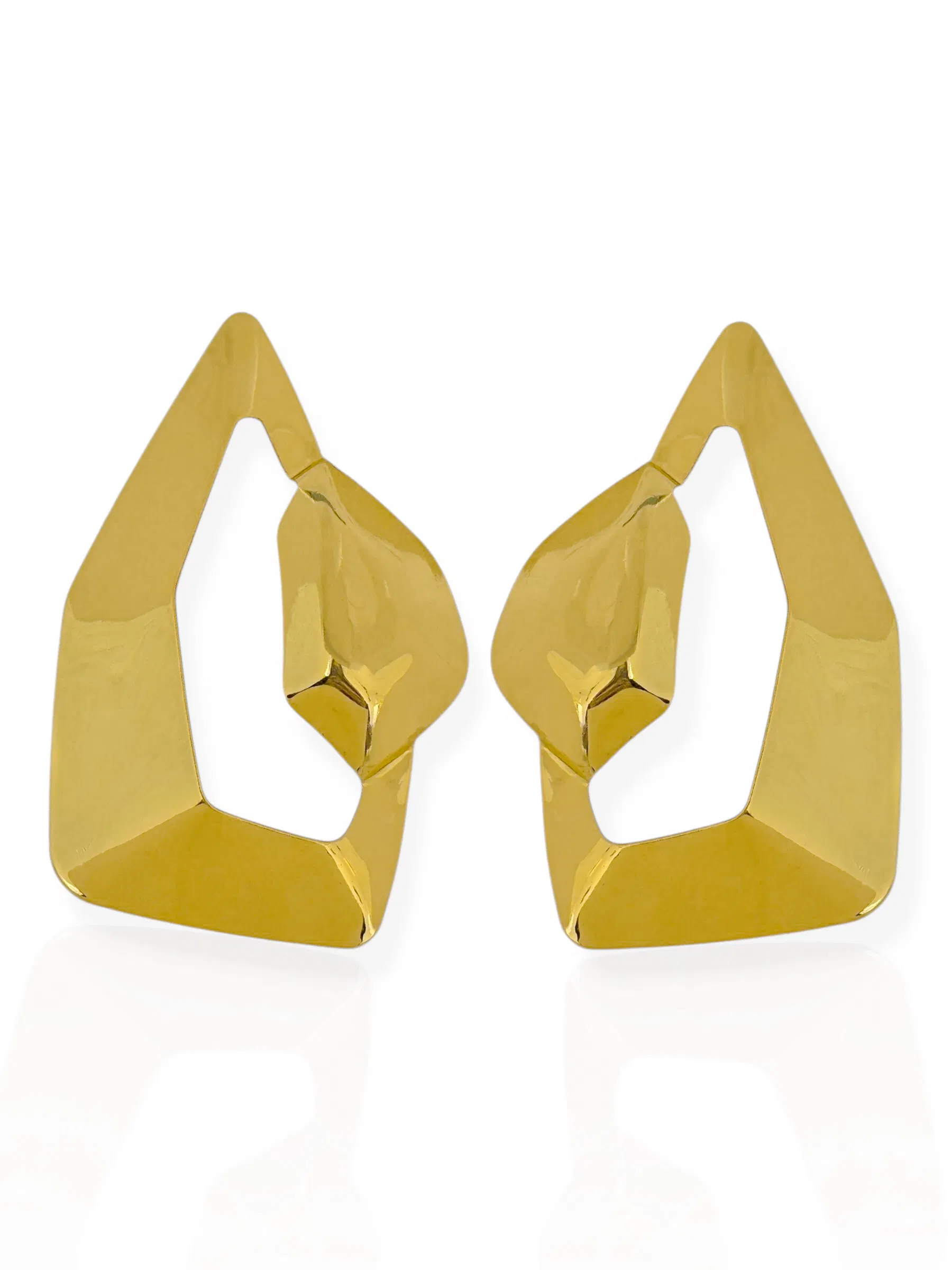 Brinco Placa Orgânica Vazada- Folhado Ouro 18K