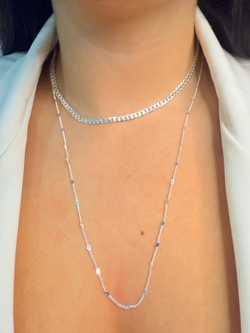 Colar Duplo Elo Coração- Folhado Prata 925