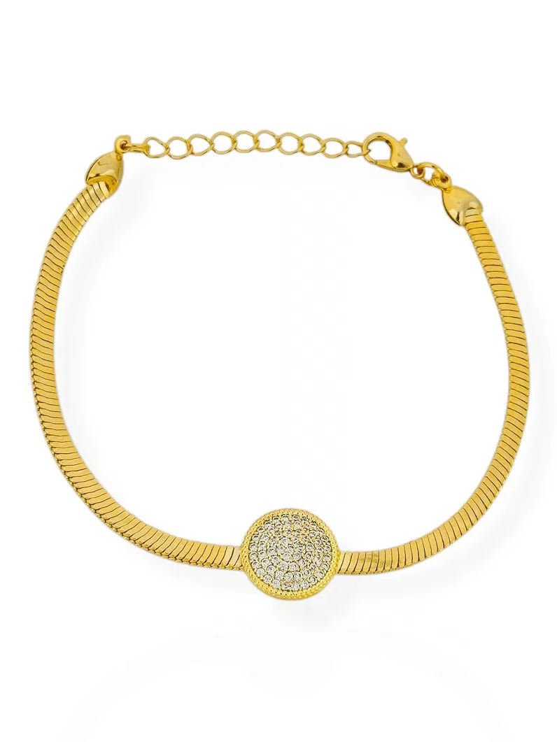 Pulseira Fita com Circulo Cravejado - Folhada a Ouro 18K