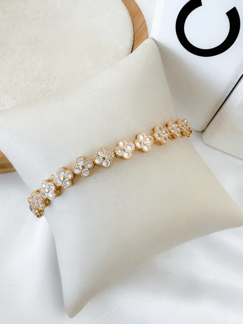 Pulseira Trevo Cravejado na Zircônia- Folhado a Ouro 18K