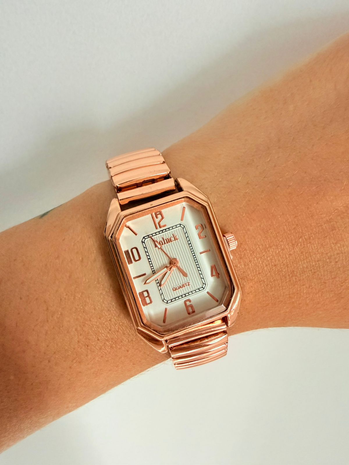 Relógio confeccionado em metal, com design elegante e acabamento moderno. Possui banho de cor, aplicado para proporcionar um visual sofisticado e atual.